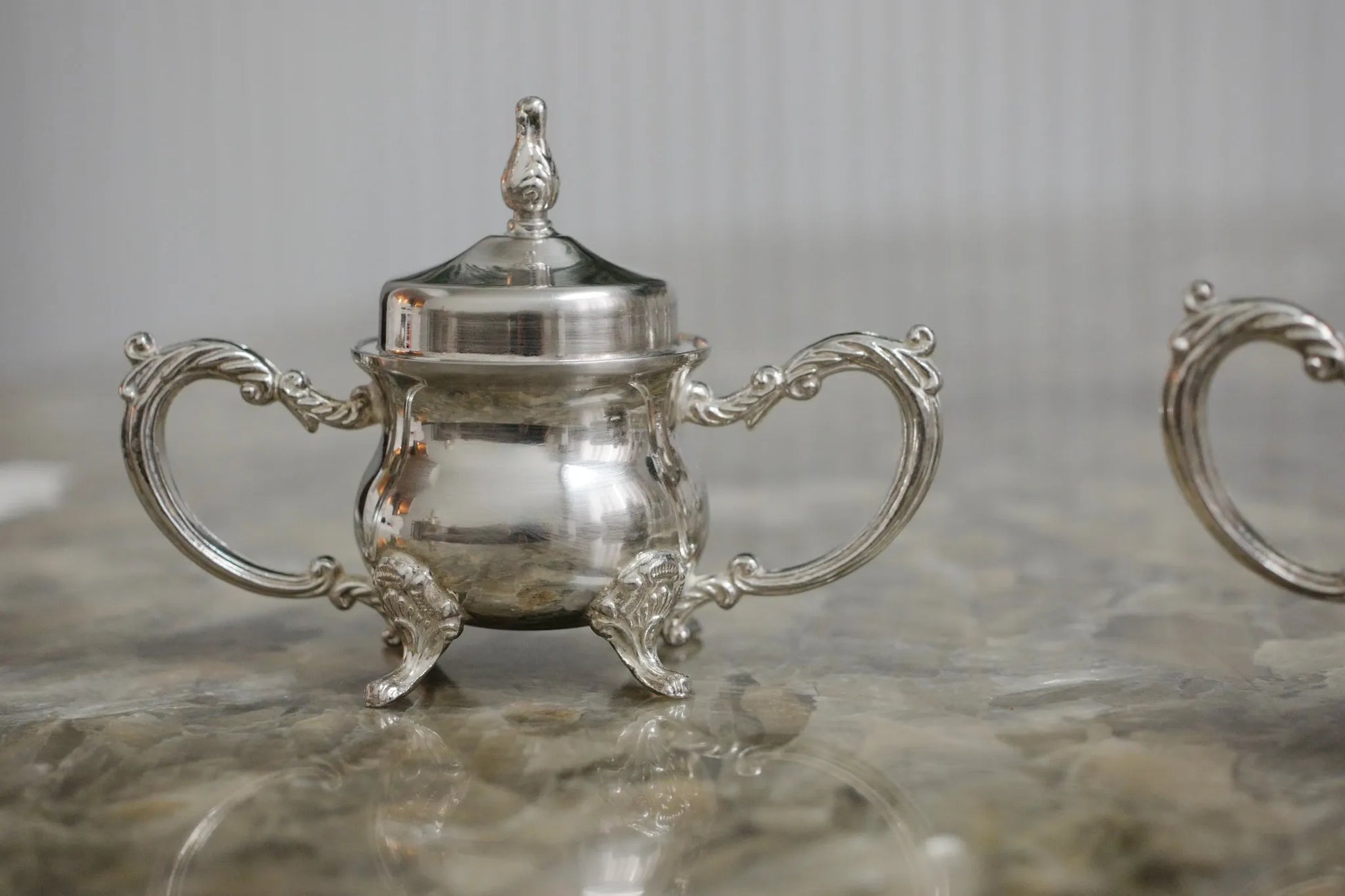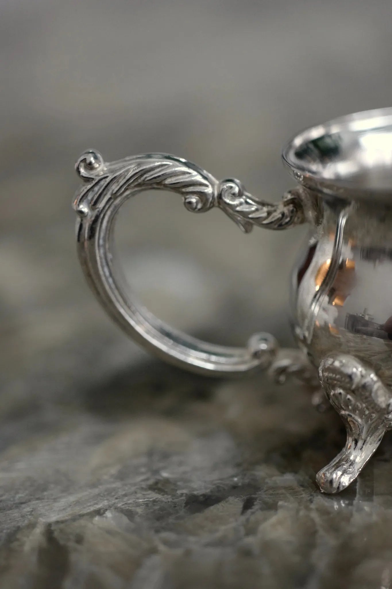 This exquisite miniature Arabic coffee set is a unique vintage find from Zurich, reflecting the timeless elegance and rich cultural heritage of traditional Arabic coffee rituals. Crafted with intricate details and a polished silver-plated finish, this charming set includes a coffee pot, milk jug, and sugar bowl – each featuring graceful handles and ornate feet, adding a touch of sophistication to your coffee moments. Perfect for collectors and lovers of fine vintage pieces, this set is a true gem that brings a sense of history and authenticity to any setting.
