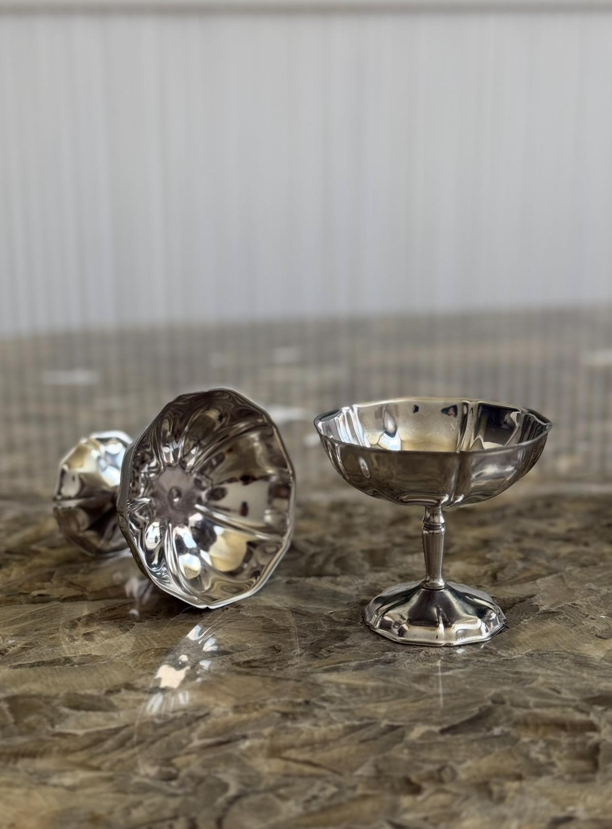 Elevate your desserts with this elegant vintage stainless steel cup. Featuring a wavy rim and polished finish, it's perfect for ice cream, sorbet, fruits, or mini cakes. A timeless piece with charm and functionality.
